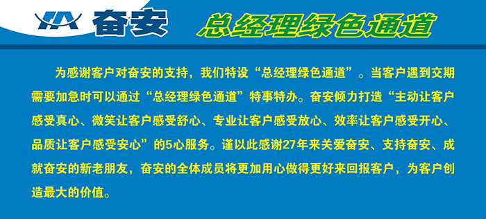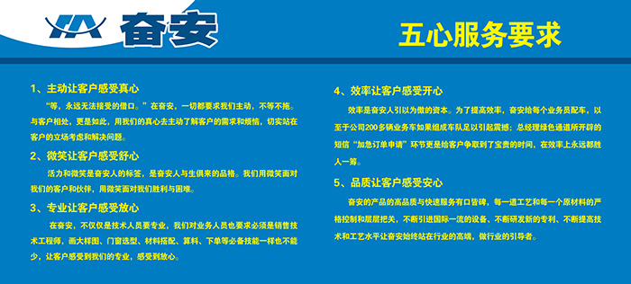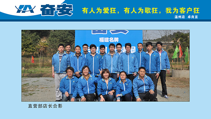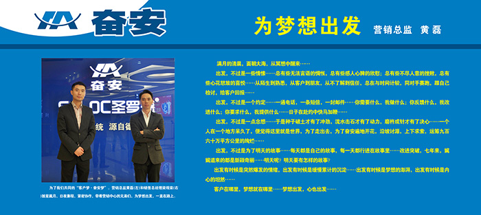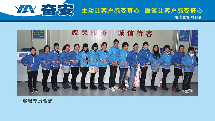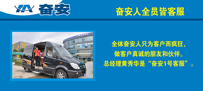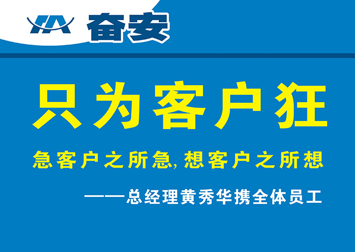 一部由奮安集團市場中心主辦的,匯集奮安集團銷售、生產、后勤、物流各職能部門職員,在奮安1號客服——集團總經理黃秀華女士的帶領下,秉承“只為客戶狂——盡一切努力,只為客戶滿意”的服務理念,在日常工作中所表現出來的各種狂人狂事的著作《只為客戶狂》,于2014年2月11日正式出版。 奮安人全員皆客服,全體奮安人只為客戶而瘋狂,做客戶真誠的朋友和伙伴。為感謝廣大客戶對奮安的支持與鼓勵,奮安全體成員將更加用心做得更好來回報客戶,我們將嚴格按照“品質高、交期準、服務好”的標準來為客戶創造最大的價值。這就是我們只為客戶而瘋狂的奮安人。