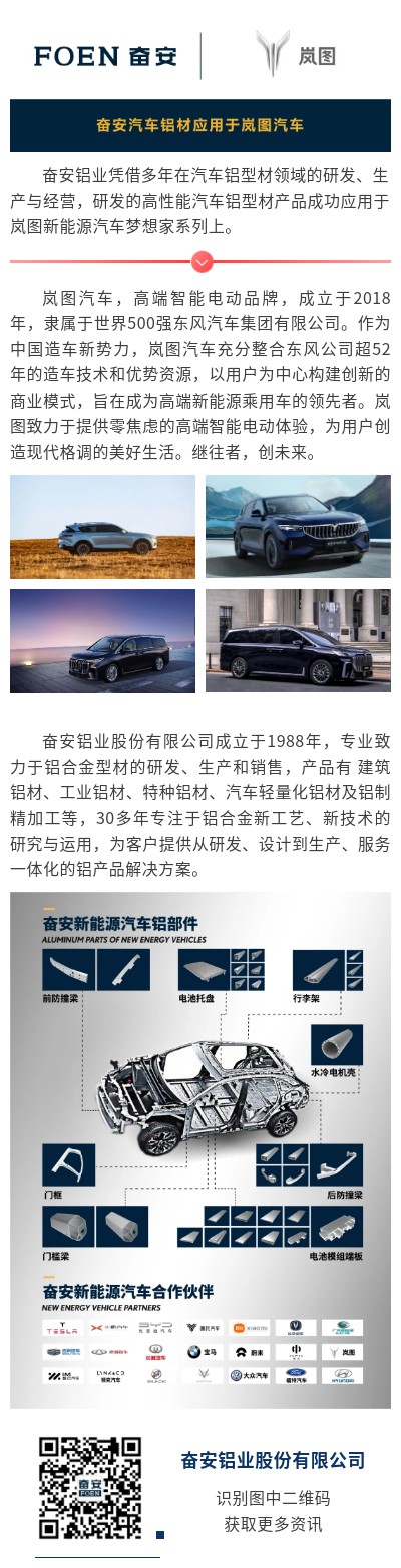 【產品應用案例】奮安汽車鋁部件應用于嵐圖新能源汽車