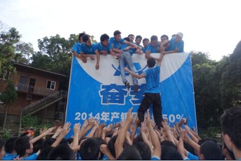 7月13日上午,在專業拓展訓練教練李教練的帶領下開始了奮安商學院特訓營必不可少的素質拓展。每一個簡單的游戲中都蘊含著深刻的道理。在“最強大腦”環節中,教練每次都會擺出不用形狀的撲克牌方陣,每次每個學員可翻的牌數不一樣,難度逐次增加。各小組學員們都認真參與,激烈地討論,有些小組進行了“鐘點式擺牌法”。令人印象深刻的要數特訓三隊的“紙幣模擬作戰法”,在地上用100元、20元、5元、1元擺出團隊成員所共同認可的方陣形式,這一模擬方法為他們最后取得勝利奠定了重要基礎。本環節結束后,李教練總結道,“首先,我們要懂得資源共享,講求共贏。其次,做事要運用正確、合適的方法,提高執行力。最后,不要在乎別人的做法、想法;關注自己,勇往直前。每個企業的產品都不一樣,要懂得進行具體問題具體分析。認真專注自己的工作,關注自己今天比昨天進步了多少,今年比去年提升了多少的業績,同時也要遵守團隊的規章制度?!毕挛绲摹绑A站傳書”,讓我們看到了學員們的創新思維,體驗到理解溝通、時刻監督、不斷更正的重要性。在奮安商學院特訓營有一面每個人都要翻越的“畢業墻”,高三米八,一大群男生爭搶著在下面“打地基”,負責當梯子,讓其他學員踩在他們的肩膀上,緩緩地撐起他們,并成功安全地幫助學員們翻越畢業墻。當他們每一個人的肩膀被其他人踩紅,甚至被踩脫皮時,沒有一句抱怨,只是簡單的一句“這是我應該做,因為我們是一個團隊,是一家人?!狈疆厴I墻不僅預示著在奮安商學院的順利畢業,而且更預示著在職場道路上學員們能迎難而上,勇攀高峰。