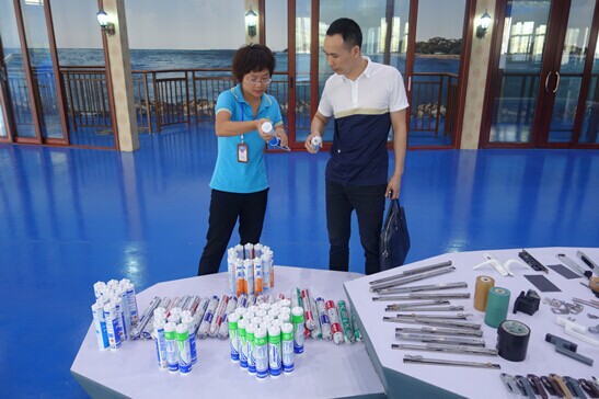 (總監在全國最大的門窗體驗中心向貴賓介紹我司專利產品——可拆換尼龍滑輪)