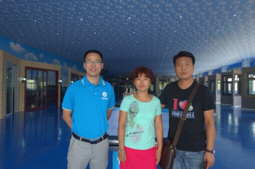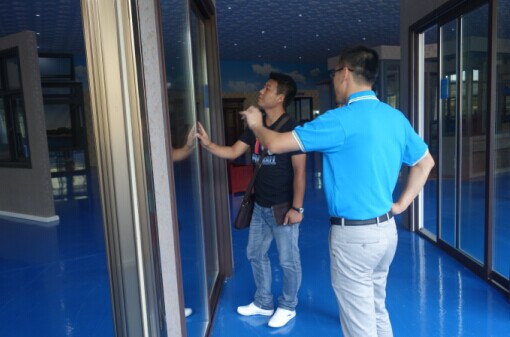 (貴賓與石副總在全國(guó)最大的門(mén)窗體驗(yàn)中心合影)