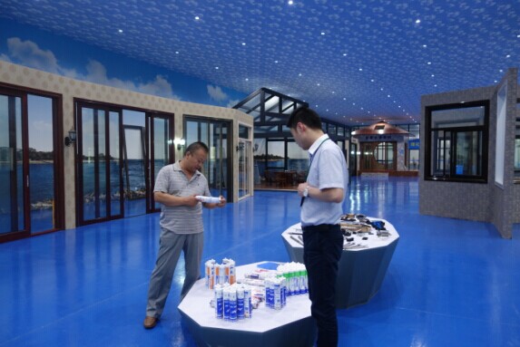 繼而,貴賓參觀全國最大的門窗體驗中心。體驗中心里面陳列著奮安大量新窗型、新系統窗、新表面處理:如仿古代的古鎮門窗、仿古欄桿、歐式系統門窗、現代窗、酒店專用窗,以及超細粉噴涂、4D木紋、電噴表面、特色鋁單板、鋁模板等一系列新表面、新產品。