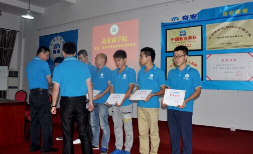 銷售副總們和技術(shù)經(jīng)理們所講解的《經(jīng)銷商的開發(fā)與管理》《銷售人員心態(tài)訓練》《會議營銷》、《鋁型材生產(chǎn)流程及關(guān)鍵點控制》、《門窗幕墻中CAD應用》、《斷面認知、鋁門窗斷面設(shè)計》、《鋁合金GB5237-2008與鋁型材品質(zhì)管理》、《鋁門窗、配件等使用知識》、《工程項目營銷》、《商務(wù)談判實務(wù)》、《連鎖直營店服務(wù)管理》、《談判與溝通技巧 》、《經(jīng)銷商的開發(fā)與管理》、《實戰(zhàn)營銷》等課程,講師們運用理論與營銷實戰(zhàn)案例相結(jié)合的方式,加之幽默風趣的話語,使我們的課堂變得格外生動。其中營銷總監(jiān)黃磊先生的《拓展分銷渠道,打造行業(yè)品牌》的授課,簡單易懂的“奮安樹”向?qū)W員們闡述了奮安集團強大有力的分銷系統(tǒng),他的“態(tài)度決定高度,思路決定出路”更是讓學員們受益匪淺。期間學員們也觀看了電影《亮劍》和《阿甘正傳》,其中一位學員分享道:堅持不懈地磨練,用高標準要求自己,是為了機會來臨時是一把最鋒刃的利劍。而這也是我們奮安人所追求的“亮劍精神”!另外,俞向輝老師的《優(yōu)秀員工,幸福人生》也是讓學員們意識到在職場上以主人翁的心態(tài),懷揣一顆感恩之心前行的重要意義。