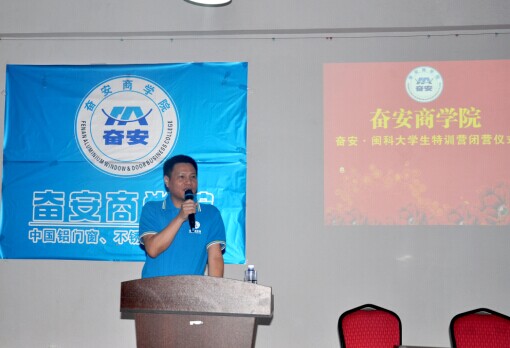 歷時八天的奮安商學院第二期暨閩科大學生特訓營隨著閉營儀式的如期舉行也順利地結(jié)束了。正如福建師范大學閩南科技學院院長邱永渠在閉營式上所題詞的:“奮安特訓生奇效,求取真知素質(zhì)強。今日雛鷹豐羽翼,長空萬里任翱翔”那樣,在這次特訓營中,學員們不僅汲取了在學校學不到的實戰(zhàn)經(jīng)驗和寶貴的知識,而且也收獲了銘記于心的情誼。