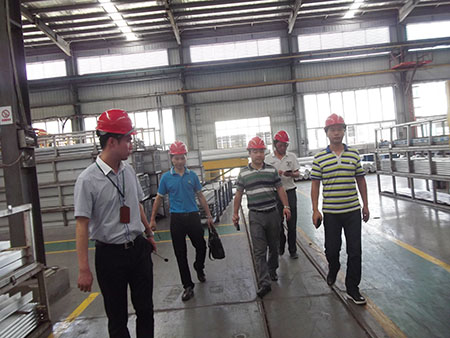 隨后貴賓談到型材庫存問題,黃副總表示,我司完全按照客戶訂單生產,成品庫里所有的型材都已“名花有主”,奮安公司不作任何庫存。