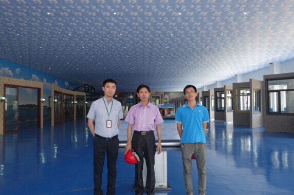 (貴賓與黃總監(jiān)在全國最大的門窗體驗中心合影)
