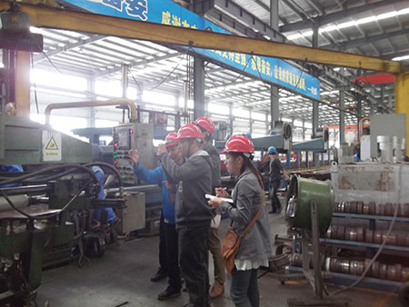 貴賓先后參觀我司型材生產(chǎn)的各個(gè)車間、各道生產(chǎn)工藝流程,其中特別關(guān)注隔熱斷橋系列的型材。