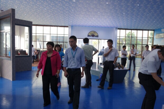 貴賓參觀奮安全國最大門窗體驗中心,總經理黃秀華女士詳細地向各位貴賓介紹奮安新窗型、新系統窗、新表面處理,如:仿古代的古鎮門窗、仿古欄桿、歐式系統門窗、現代窗、酒店專用窗,以及超細粉噴涂、4D木紋、電噴表面、特色鋁單板、鋁模板等一系列新表面、新產品。